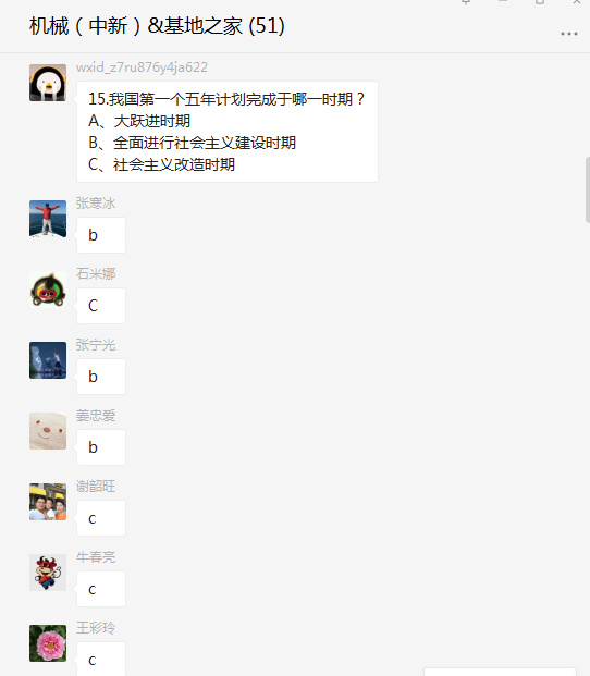 为了进一步教育引导学院师生全面了解我们党成立以来、新中国成立以来以及改革开放以来的重大事件、重要会议、重要文件、重要人物,进一步增强基层党组织的凝聚力和战斗力,学院党总支于10月16日晚开展竞答交流分享活动,依托网络平台,设置讲述展示和参观竞答两个环节,充分用好讲党课这一党的组织生活制度,组织全院师生观看刘焕英、谢韶旺两位老师前期录制的党课视频,切实增强党员教育的针对性实效性,观看党课视频后,以竞答讲述的形式推进学习教育,组织全体党员利用微信群线上开展党的知识竞答。