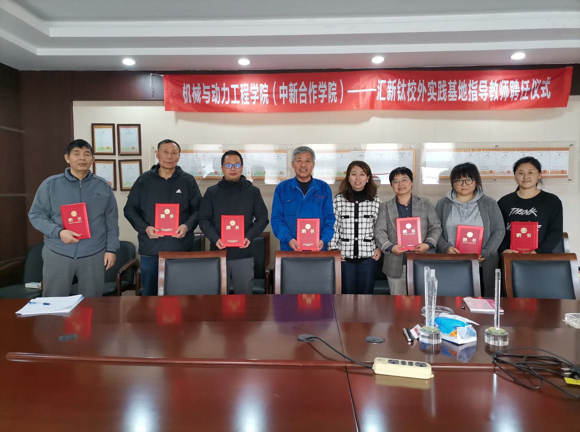 4月19日 上午,蜜桃堂 (中新合作学院)潘澜澜等赴大连汇新钛设备开发有限公司签署专业学位研究生联合培养协议,并为企业实践导师颁发导师受聘证书。