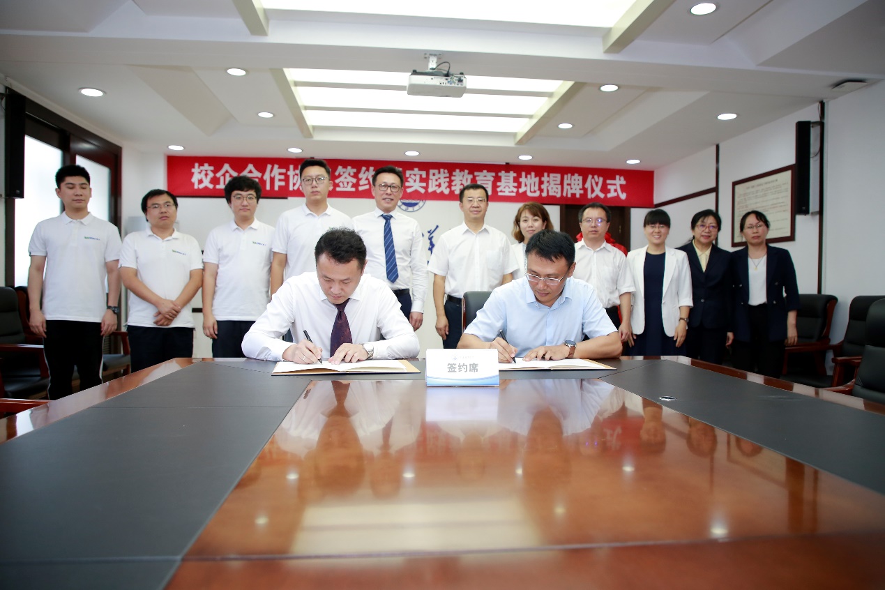由腾马科技金和年与我校高巍进行了校企合作协议签约,由腾马科技王晓光和我校张国琛进行了实践教育基地揭牌。