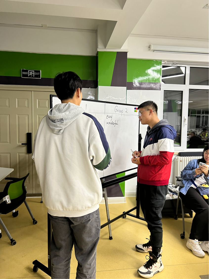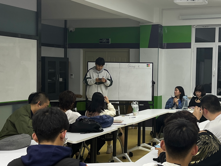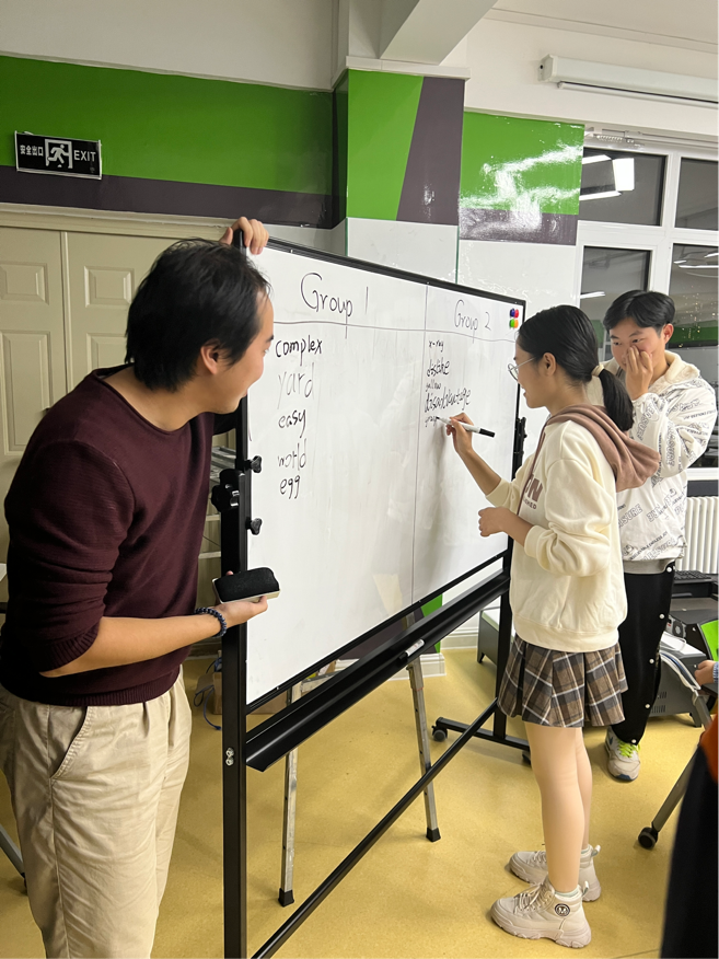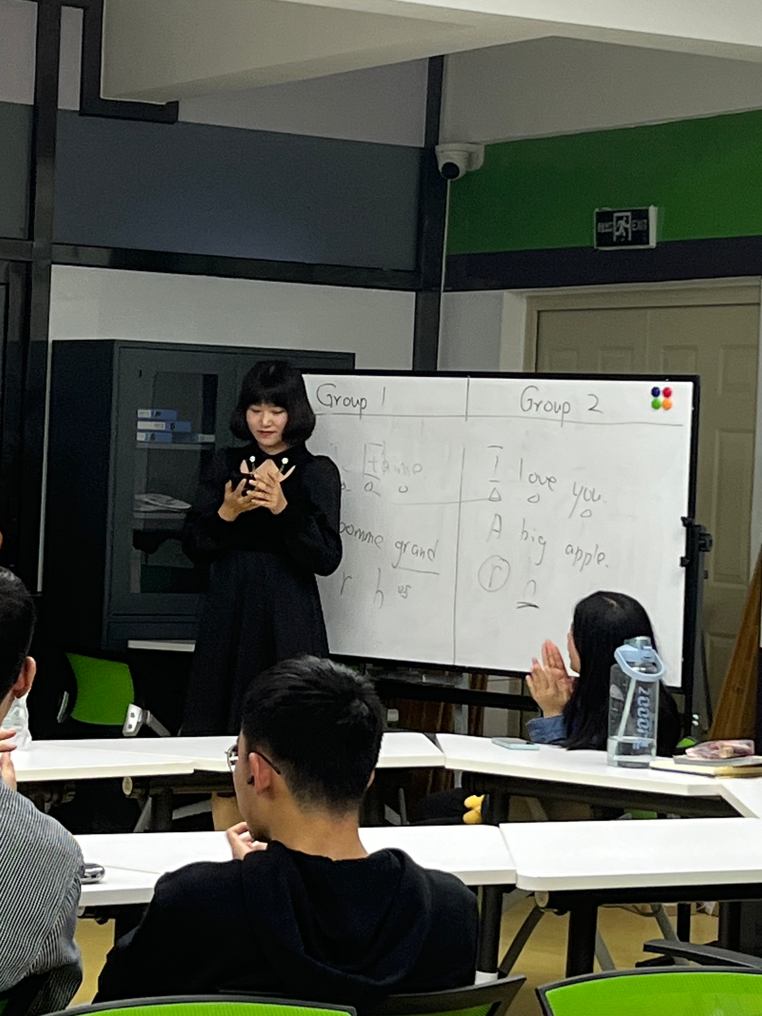 首先是英语词汇接龙,同学们根据上一位同学写的英语单词的最后一个字母为首字母进行接龙。第一组是工坊新生中雅思成绩最高的四位同学进行2对2pk。第二组是高考中的日语考生分别用英语以及日语进行了双语1对1pk。第三组是工坊的大四成员进行1对1pk。当参与pk的同学感到词汇匮乏的时候,观看比赛的同学们也在动脑筋想相关的单词。