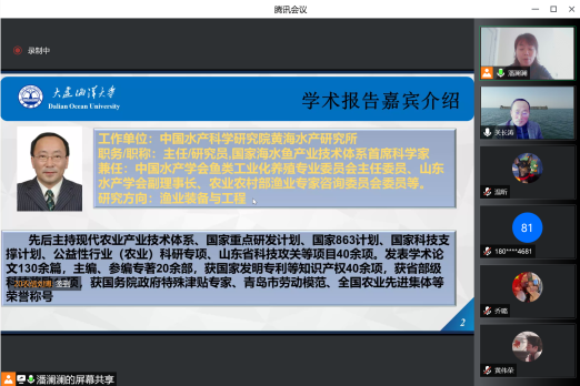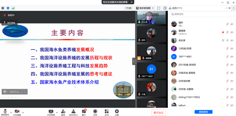 教师、研究生及本科生做了《我国海洋设施养殖技术的发展与展望》学术报告。