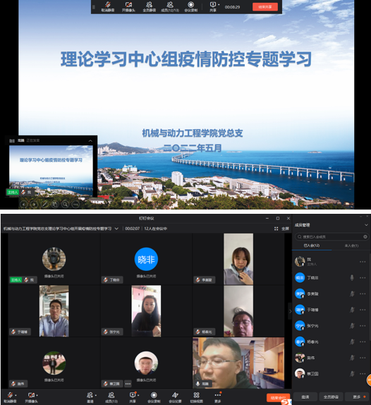 党总支理论学习中心组在钉钉线上平台开展疫情防控专题学习。学院党总支理论学习中心组成员、各党支部书记参加会议,本次学习由党总支书记高巍同志领学。