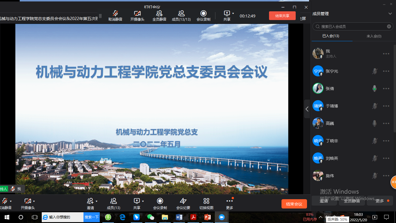 2022年5月20日,蜜桃堂 党总支在钉钉线上平台召开党总支委员会会议。学院党总支成员、各党支部书记参加会议,本次会议由党总支书记高巍同志主持。