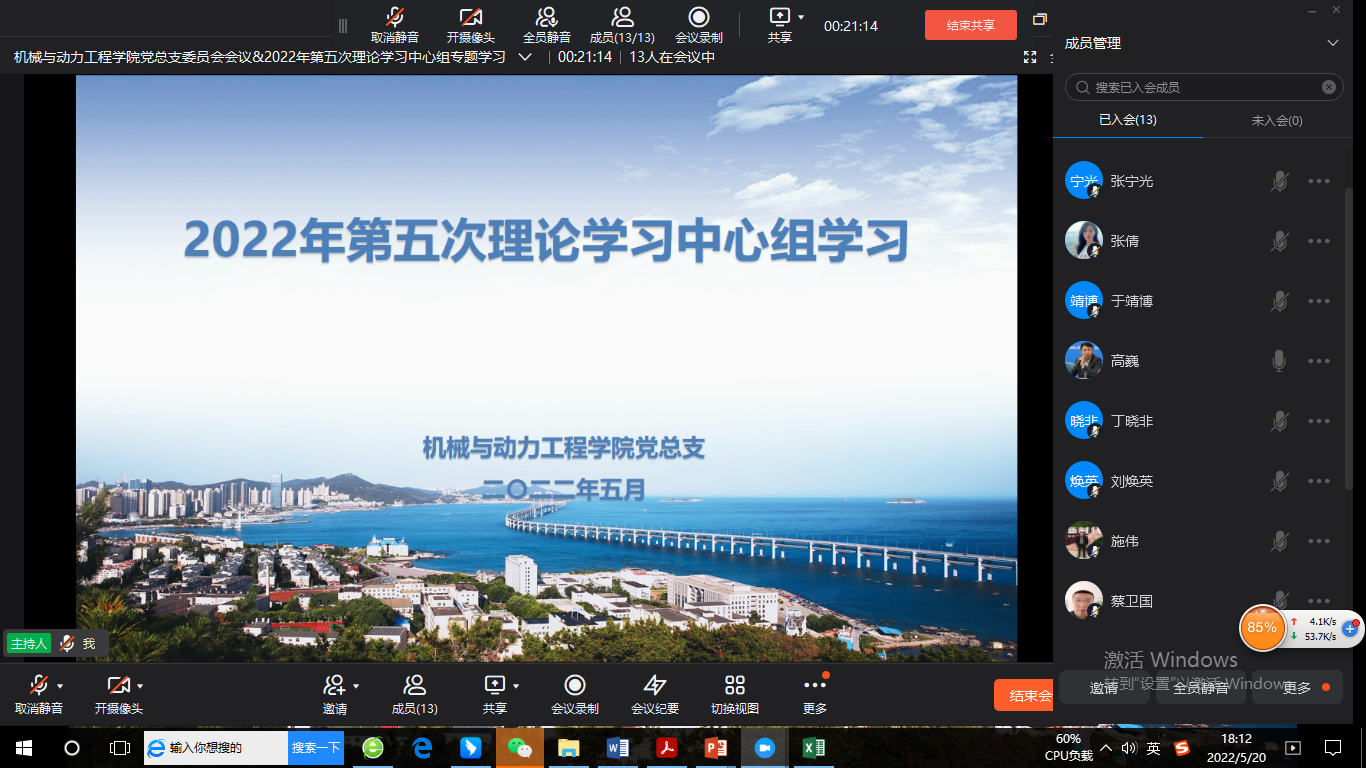 2022年5月20日,蜜桃堂 党总支在学院在钉钉线上平台召开2022年第五次理论学习中心组学习会议。学院党总支理论学习中心组成员、各党支部书记参加会议,本次学习由教学副院长张宁光同志领学。