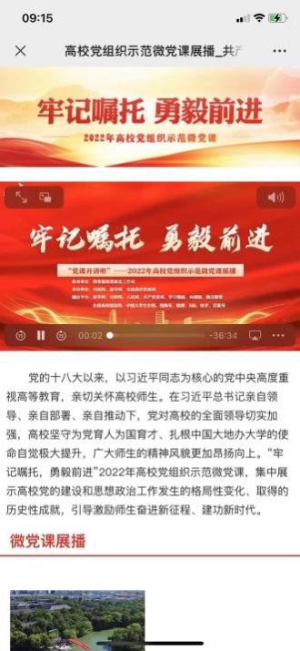 为充分展示高校贯彻落实习近平总书记关于教育重要论述、重要讲话、重要回信精神的做法成效,为党的二十大胜利召开营造良好氛围。按照学校党委和学院党总支的要求,能源与动力工程教研室党支部组织全体党员教工收看了示范微党课第1讲。本次微党课以“牢记嘱托,勇毅前进”为主题,由北京大学、中国人民大学、复旦大学、湖南大学4所高校党委书记和教师代表,围绕学习贯彻习近平总书记考察学校重要讲话和给学校师生重要回信精神,讲述牢记习近平总书记殷殷嘱托、坚持马克思主义指导地位、坚持社会主义办学方向、传承光荣传统和红色基因等情况。