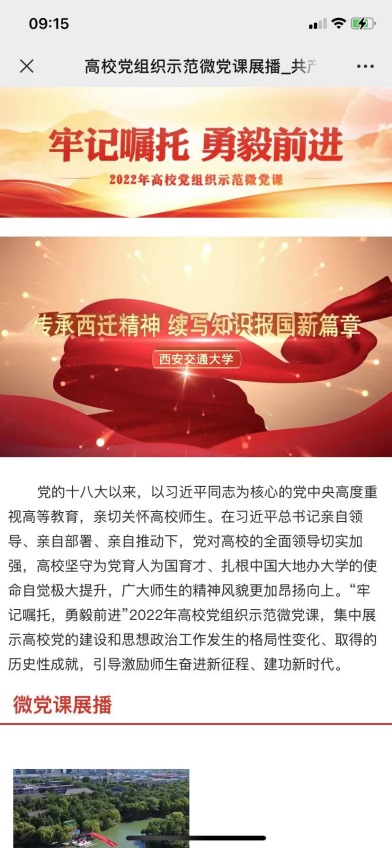 为充分展示高校贯彻落实习近平总书记关于教育重要论述、重要讲话、重要回信精神的做法成效,为党的二十大胜利召开营造良好氛围。按照学校党委和学院党总支的要求,能源与动力工程教研室党支部组织全体党员教工收看了示范微党课第2讲。本次微党课由西安交通大学、中国科学技术大学、中南大学、南昌大学4所高校党委书记和教师代表,围绕学习贯彻习近平总书记重要讲话精神和重要回信精神,讲述学校牢记习近平总书记殷殷嘱托,坚持为党和国家事业发展服务,传承弘扬“西迁精神”、“两弹一星”精神,推进高水平科技自立自强的情况。支部党员收看后反响热烈,纷纷表示在线学习了《牢记嘱托,勇毅前进》2022年高校党组织示范微党课第2讲后,更加加深了对“坚持马克思主义指导地位”这一主题的认识和理解。“听党指挥跟党走”不仅是前辈们用青春和奋斗践行的人生信条,也应该是我们所有人砥砺前行,谱写新时代赶超篇章的坚定信念。