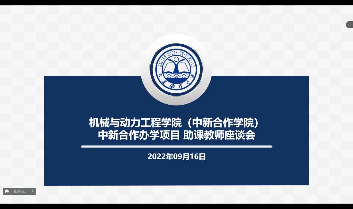 9月16日,项目在线举行了中新合作办学项目助课教师座谈会,中新合作办学项目领导相关人员、北方项目办公室相关教师及本学期全体助教老师参与会,会议由张宁光主持。