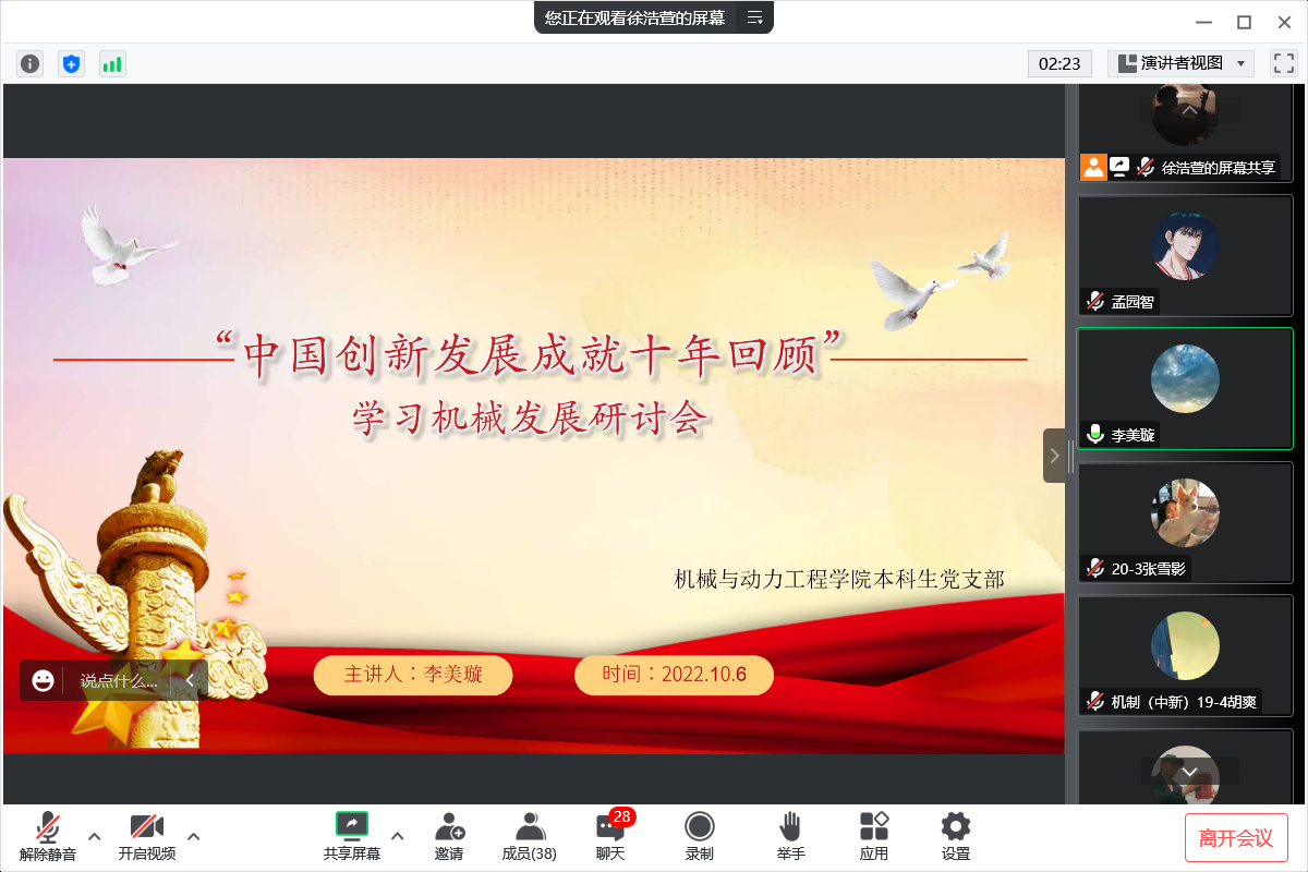 2022年10月5日蜜桃堂 本科生党支部举办“机械近十年发展”党日活动。
