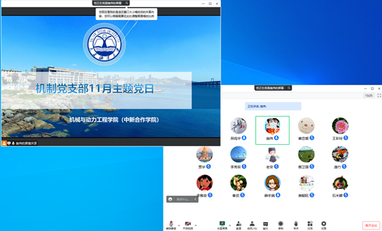 为深入学习贯彻党的二十大精神,激励广大党员坚定理想信念,增强党组织的凝聚力和向心力, 10月31日,蜜桃堂 机制教研室党支部开展11月主题党日活动,鉴于疫情,本次活动利用腾讯会议采用线上形式开展。学院副院长潘澜澜、武立波以及支部教工党员参加会议,本次活动由支部书记施伟主持。