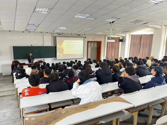 最后赵希波从“仰望星空”、“家国情怀”和“塑造自我”三个方面激励学生,要树立远大目标,关心国家大事,提高专业知识和实践技能,做一个有道德、能包容、抗挫折的新时代有为青年。