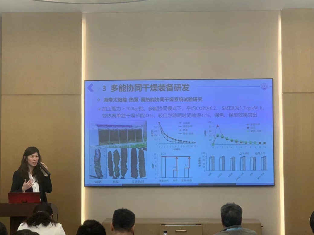 张倩在会上作了题为“海带多能协同干燥技术及装备研究”的报告,分别从海带干燥技术装备研发的背景与意义、海带干燥工艺研究、多能协同干燥装备研发等展示了团队的研究成果,会场气氛热烈,取得了良好的学术交流效果。