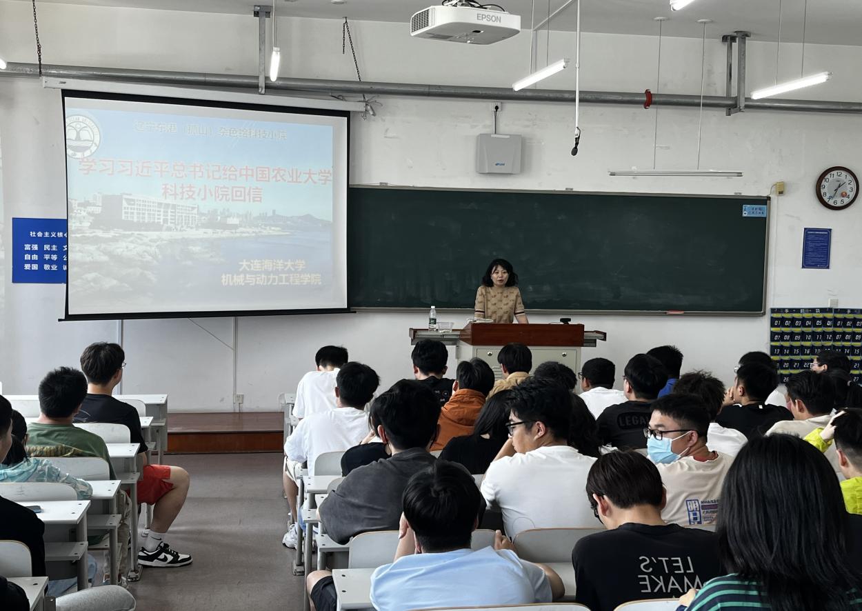 副院长潘澜澜老师领学了习近平总书记给中国农业大学科技小院重要回信精神,并介绍了学院辽宁东港大孤山杂色蛤科技小院基本情况及工作进展。学院将依托学院科技小院的建设,以回信精神为指引,推进政产学研用合作,推动专硕人才培养模式改革,扎根产业一线,将小院建设为集科学研究、社会服务、人才培养于一体,培养多学科交叉复合型人才,服务辽宁和我国北黄渤海地区的渔业设施、装备工程及信息技术领域。