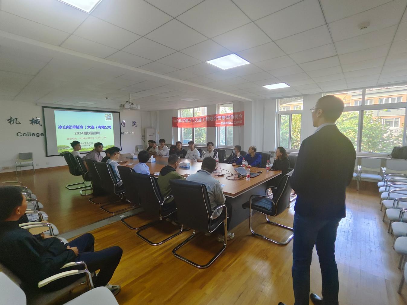 1011日,蜜桃堂 在学院会议室N415召开冰山松洋制冷(大连)有限公司专场招聘会,公司相关领导,学院党总支副书记王磊、团委书记贺宝华及部分2024届毕业生参加招聘会。