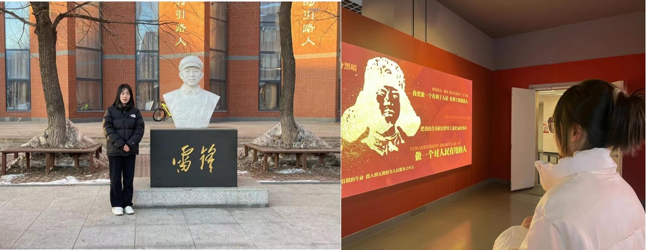 2024年1月,由王子懿、史效齐、林思雯、马迎秋、张圣、王林林组成的雷厉“锋”行团队以“赓续雷锋精神,奋斗成就梦想”为主题,开展寒假“返家乡”社会实践活动。中华民族薪火相传的伟大精神中,雷锋精神是不可或缺的一抹亮色。王子懿一行人跟随着馆内讲解员的脚步,仔细观看学习雷锋同志的经历,从一件件小事中感受雷锋的成长经历、雷锋精神形成过程。看着一篇篇雷锋日记,一个个感人至深的故事,同学们深刻感悟到了雷锋同志热爱党、热爱祖国、热爱社会主义的崇高理想和坚定信念,服务人民、助人为乐的奉献精神,干一行爱一行、专一行精一行的敬业精神,锐意进取、自强不息的创新精神以及艰苦奋斗、勤俭节约的创业精神。