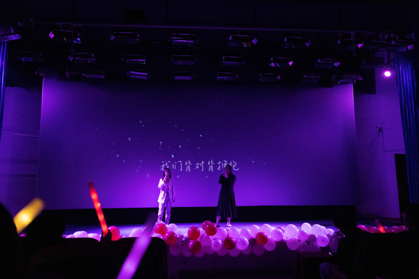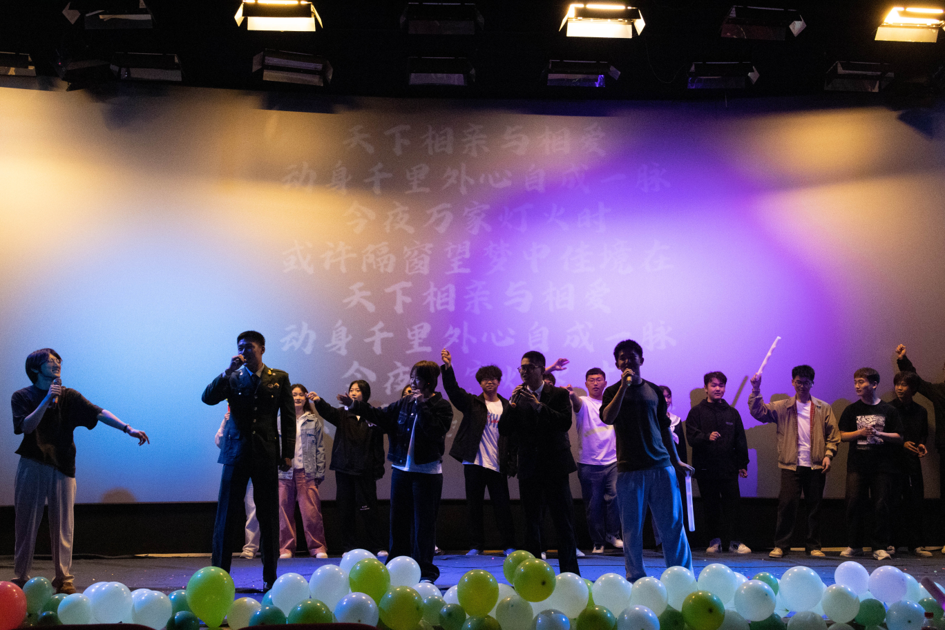 晚会走向尾声,观众热情不减,激昂澎湃。由夏步天等同学组成的合唱团倾情演唱大合唱《如愿》唱出了广大青年的心声,表现出了中华民族从古至今的家国情怀和坚持不懈的奋斗精神。生逢伟大时代,面对“天将降大任于斯人”的机遇,机械学院的青年学子们会以“吾将上下而求索”的决心、“乱云飞渡仍从容”的泰然、“绝知此事要躬行”的精神主动担当使命与责任。在2023级本科生辅导员李美璇和全体演员合唱《相亲相爱》的歌声中,晚会圆满落幕。