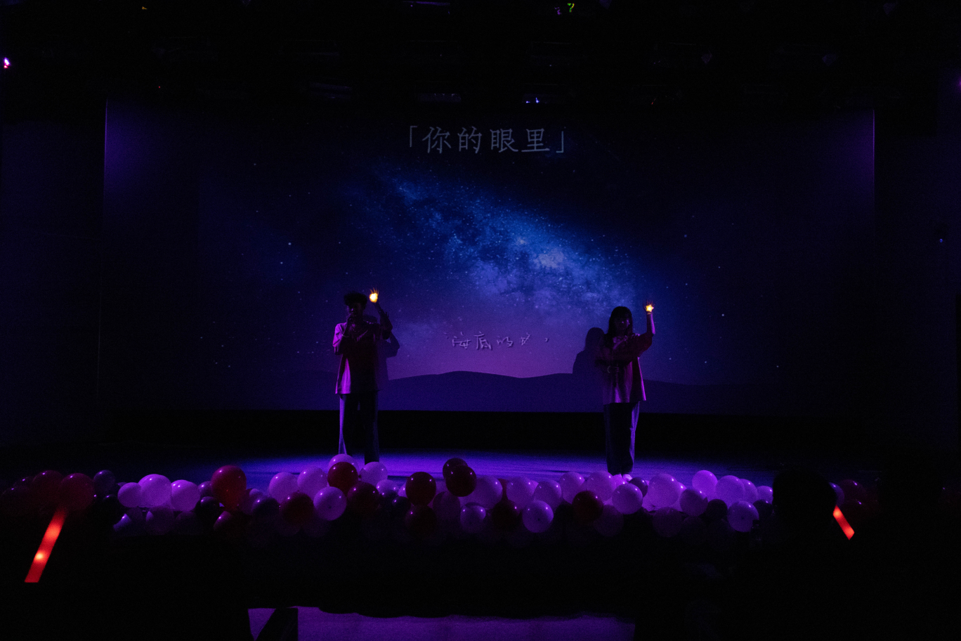 晚会在1101乐队演奏的《山海》《黄金之风》《但》《精卫》《鲜花》中拉开序幕,青春洋溢,热情似火。一首《天下》,一字一句展现出大一学子胸怀大志、勇敢追梦的气魄;《背对背拥抱》深沉温柔,引起全体同学情感共鸣;《夜半小夜曲》凄楚动人、跌宕起伏,观众陷入回忆;舞蹈《bambi》柔和温婉、如梦似幻,是浪漫的旋律;相声《学电台》幽默诙谐,同学们笑声连连、掌声激烈,将晚会推向高潮。