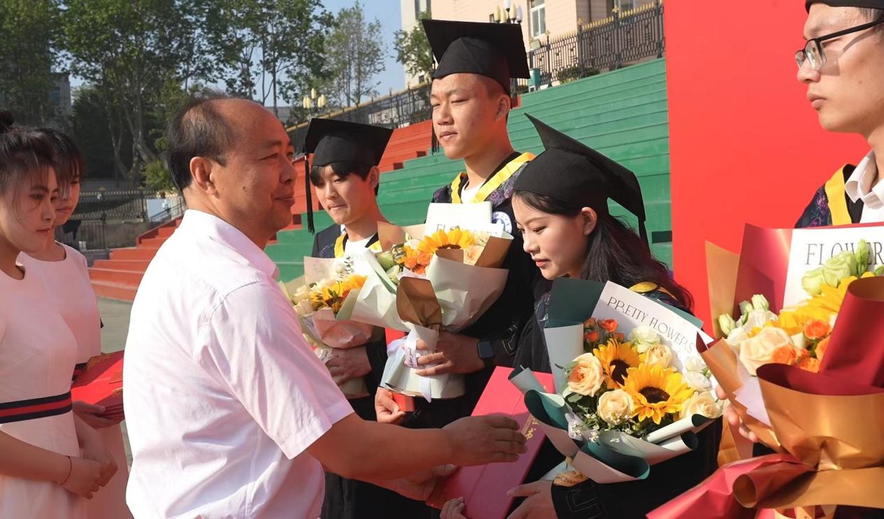 赵希波为省优秀毕业生、大连市优秀毕业生、校优秀毕业生代表以及国家奖学金、省政府奖学金获得者颁发荣誉证书并鼓励他们在未来的道路上继续努力。