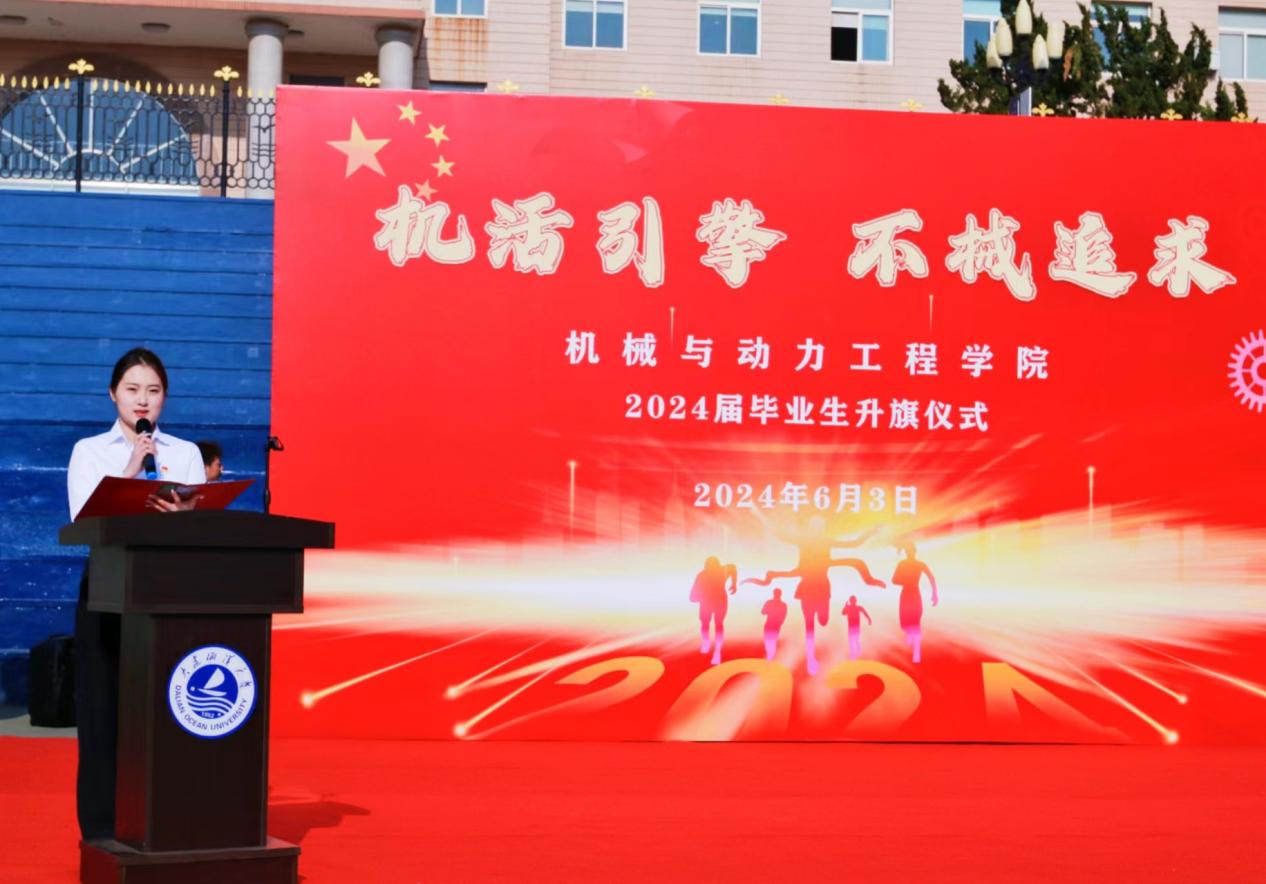 6月3日,蜜桃堂 在黑石礁校区足球场举行“‘机’活引擎 不‘械’追求”2024届毕业生主题升旗仪式。学院院长丁晓非、党总支书记赵希波、党总支副书记王磊、团委书记贺宝华出席升旗仪式,学院2024届毕业生和2021、2022级全体学生参加活动。