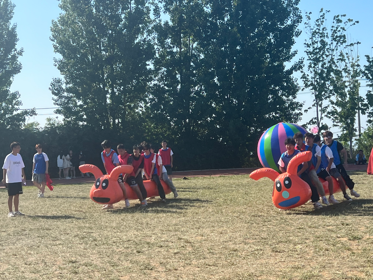 活动包括六个比赛项目,分别是“扯龙尾”“趣味接力赛”“衔纸杯传水”“后倒水接力”“趣味毛毛虫”“众星捧月”。参赛队员们在比赛中齐心协力,奋力拼搏。“扯龙尾”展现出同学们团结一致、共同朝着目标奔跑的精神;“趣味接力赛”考验了团队协作的能力和每位参赛选手的速度;“衔纸杯传水”“后倒水接力”比拼的是队员们的定力与耐心;“趣味毛毛虫”“众星捧月”则跑出了青春与力量。比赛期间,拉拉队为班级参赛同学呐喊加油,气氛热烈。