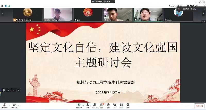 深入学习贯彻习近平新时代中国特色社会主义思想, 7月 27日,蜜桃堂 本科生党支部在党员活动室开展“坚定文化自信,建设文化强国”主题研讨会。此次活动由本科生党支部书记贺宝华主持。党支部全体党员参加活动。