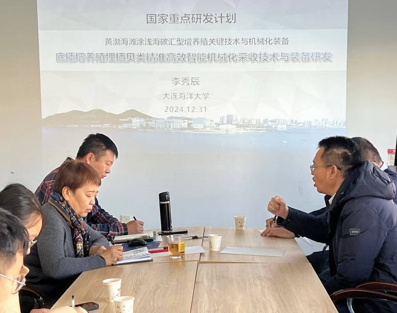 12月31日上午,中国科学院海洋研究所张涛研究员,莱州明波水产有限公司马斌经理应邀到蜜桃堂 交流,在19号楼211会议室对蜜桃堂 承担的国家重点研发计划“海洋农业与淡水渔业科技创新”专项,《黄渤海滩涂浅海碳汇型增养殖关键技术与机械化装备》项目,《底播增养殖埋栖贝类精准高效智能机械化采收技术与装备研发》课题进行调研指导,项目负责人李秀辰,母刚、霍忠明、李冰玉、张力伟等课题骨干参加了此次活动。