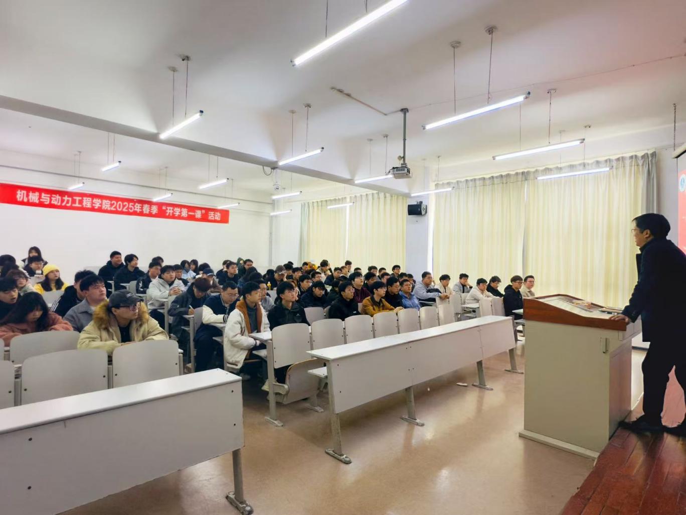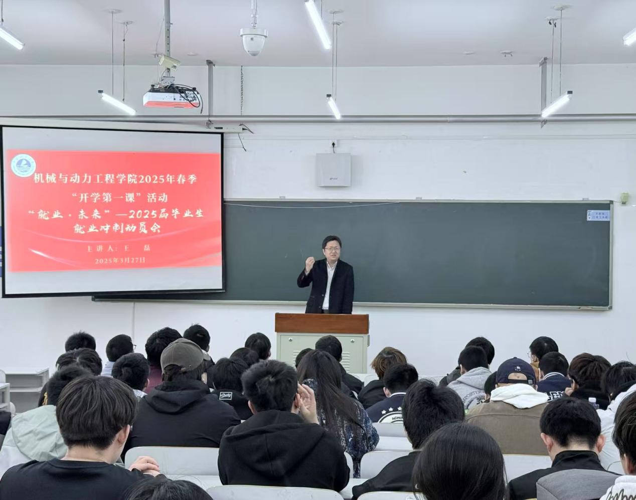党总支副书记王磊在黑石礁校区獐子岛教学楼104讲授2025年春季“开学第一课”,全体毕业生参加。